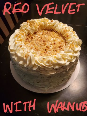 Delicious Homemade Red Velvet cake with choices of nuts